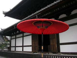 真壁と朱傘のコントラスト。相国寺にて。