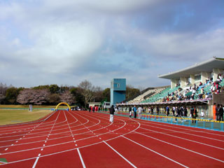 スタート及びゴールは中央緑地内の陸上競技場。やはりこういう場所に立つと意識が高揚してきて気持ち良い。8:55号砲とともにスタート。競技場内はコース幅がないので、しばらくは歩くのと同じペース。道路に出てようやく走り出す。
